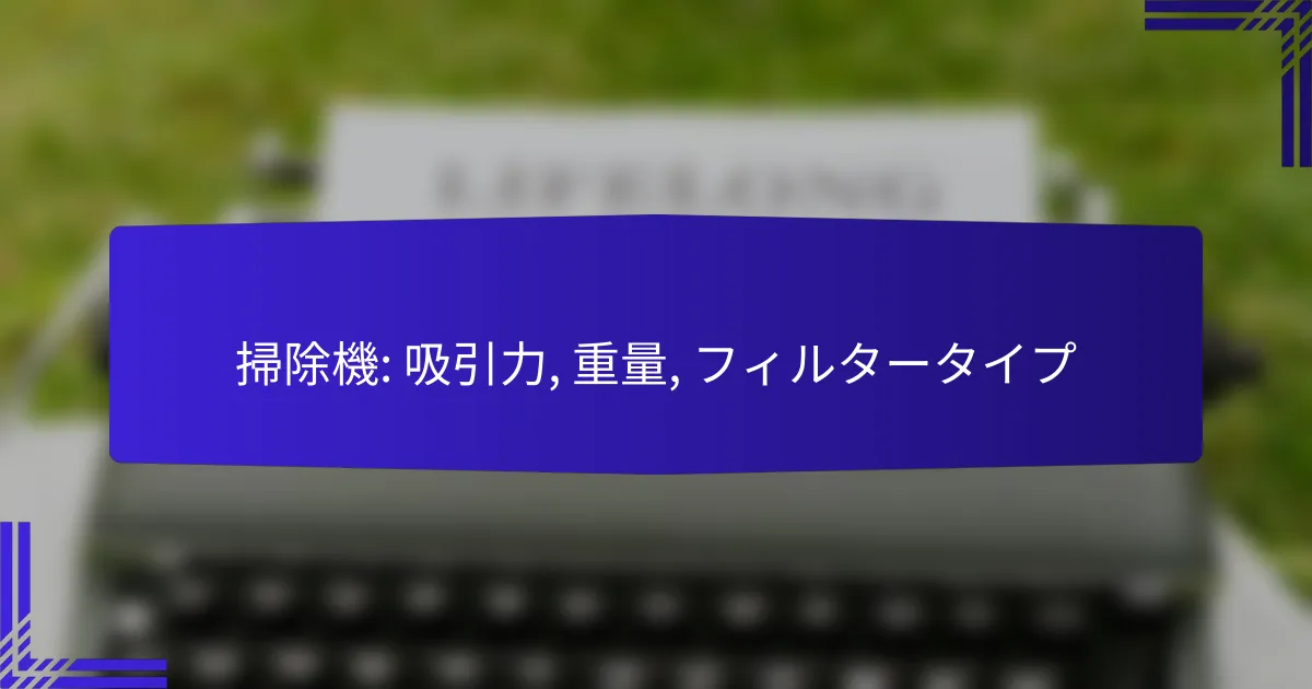 掃除機の選び方では、吸引力、重量、フィルタータイプが重要な要素です。吸引力はゴミを効果的に取り除く能力を示し、重量は操作性や快適さに影響を与えます。また、フィルタータイプによって捕集能力やメンテナンスの手間が異なるため、使用目的に応じた選択が求められます。