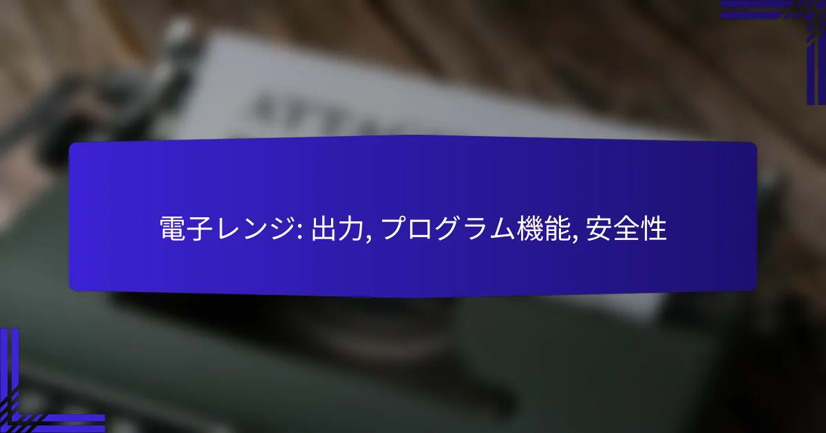 電子レンジは、出力によって食材を迅速に加熱することができる便利な調理器具です。プログラム機能を活用することで、特定の料理に応じた自動調理が可能になり、手間を省くことができます。また、安全性を確保するためには、正しい使用方法と適切なメンテナンスが重要です。